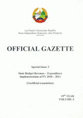 Official Gazette : State Budget Revenue and Expenditure Implementation of Fiscal Year 2010-2011 of all provinces, Vientiane Capital Volume 1 & 2 (By Sectors and by Budget Nomenclatures)