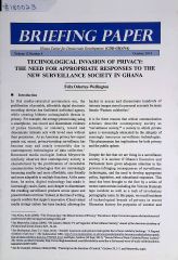 Technological Invasion of Privacy : The Need for Appropriate Responses to the New Surveillance Society in Ghana - Briefing Paper Vol. 13 No. 4, 2014