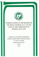 Nigerian Law Reform Commission : Working Paper on the Reform of the Price Control Act, Cap. P28, Law of the Federation of Nigeria (LFN), 2004