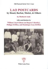 Lao Postcards by Houel, Barbat, Mottet, and others is the volume 2 of the Old Postcard Series. This volume covers five postcard publishers who produced Lao postcards: Houel, G. Barbat, Mottet & Cie, La Maison d’Art Colonial, Edition de la Cie Coloniale du Laos and a collection of Lao maps on postcards Houel was a customs officer in Southern Laos and his postcards reflect his work with some unique photos hardly shown on other postcards He is one of the few one-country postcard photographer and publisher, like Raquez was. G. Barbat published nearly only hunting postcards shot in southern Laos, northeast Cambodia and Cochinchina. He can be regarded as a one-topic publisher and also only in one area Both publishers have in common, that all are personal photos Mottet was a publishing house of postcards of the Indochinese countries as well as a trading house and its photos were made by different photographers who are not recorded The other two publishers were promoters of French colonies. La Maison d’Art Colonial produced series of 20 cards each of many colonies. Here only Laos and Cambodia are shown. And a separate series only covers only Angkor in Cambodia Edition de la Cie Coloniale du Laos (Ventiane) is also a one country postcard publisher The map section is a collection of maps on postcards done by different publishers and for Different purposes like postcards and also advertising cards for certain products Besides the sections covering the publishers seversal articles analyze different aspects of the postcards and compare them with other cards As Barbat deals with hunting cards, some contributions also cover cards made by Defosse, a hunter and some other hunting cards by Decoly (whose cards also prominently covered in volume 1, as he duplicated many of Raquez postcards under his brand Decoly and also La Pagode) And the most important article deals with new information of Alfred Raquez, the foremost publisher/photograph of Laos. William Gibson discovered his real name and identity. This is also a correction of information given in volume 1: Lao Postcards by Alfred Raquez.