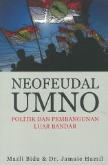 1. UMNO 2. Political parties – Malaysia. 3. Rural development – Malaysia. 4. Malaysia – Politics and government. 5. Malaysia – Social conditions. 6. Jamaie Hami. Epistemologi feudalisme boleh dikaji dari pelbagai perspektif termasuk sejarah, undang-undang, ekonomi, sosiologi dan sains politik. Feudalisme juga dilihat dari sudut geopolitik dengan kajian-kajian tertumpu kepada feudalisme di Benua Eropah Barat, di Asia Timur dan Asia Tengah dan juga kajian feudalisme yang mengkhusus negara-negara tertentu. Di negara ini feudalisme turut menjadi subjek kajian terutamanya berkaitan budaya feudal golongan istana dan kaum Melayu secara komprehensif. Peredaran masa menyaksikan neofeudalisme pula mengambil tempat dalam dunia kajian sosiopolitik. Budaya politik masyarakat di luar bandar cukup menarik untuk dibahaskan kerana penguasaan geopolitik kawasan luar bandar merupakan katalis dan penentu kejayaan kepada mana-mana parti politik dalam pilihan raya khususnya di Malaysia. Kawasan luar bandar menjadi deposit tetap kepada kelangsungan kemenangan kebanyakan kerusi parlimen parti pemerintah. Perkembangan ini menjadi stimulus dan dorongan kepada pengkaji serta pemerhati politik untuk mencari bahan bacaan yang membincangkan budaya politik neofeudal yang sinonim dengan sosiopolitik luar bandar. Buku ini turut merangsang pembaca untuk terjun sama ke dunia politik menerusi analisis sebenar tentang hegemoni dan survival kuasa parti pemerintah. Bukan sekadar membicarakan teori dan konsep sains politik, buku ini memberi pemahaman tentang bagaimana kuasa dieksploitasi untuk mengukuhkan kedudukan politik sehingga mencambahkan kesedaran palsu, akur dan wala’ nya masyarakat kepada pemimpin politik. Buku yang menyentuh budaya politik neofeudal UMNO ini boleh menambah korpus ilmu berkaitan budaya politik feudalisme dan neofeudalisme di negara ini. Tambahan pula buku ini dihasilkan menerusi kajian yang reliable hasil input daripada sumber perpustakaan, temu ramah malahan penulis sendiri turun padang melihat dan mendapatkan maklumat di kawasan kajian. Pengalaman penulis bertugas di agensi kerajaan juga telah membantu penulis mendapatkan informasi daripada pelbagai agensi kerajaan berkaitan pembangunan luar bandar.