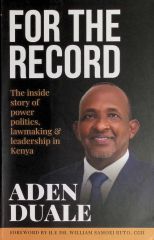 FOR THE RECORD, The inside story of power politics lawmaking and leadership in Kenya politics Book by Hon Aden Duale EGH For The record by Hon Aden Duale is peppered with candid recollection of key events, dates and private conversations that illuminate the thinking of Kenya’s top leadership. It reads like frank self-assessment – warts and all — from a grassroots lawmaker with a national profile, a clear-eyed introspection by a connected powerbroker. The book reveals that for the majority of Kenyan politicians, the currency is betrayal, treachery, hypocrisy and greed. For the reticent minority, politics is about personal determination to change lives, strategic focus to sustainably empower people, keeping public interest first. Duale reflects on the philosophy of the hustle. He shows that even if you have a mentor opening doors for you, you must work hard. In the end, with God, all things are possible.